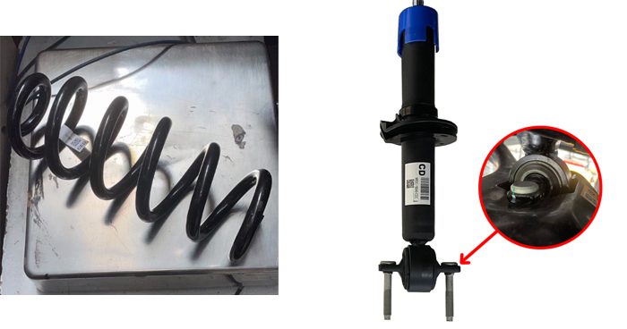Above Left: Standard front coil spring taken from the Next Gen Ranger being weighed for comparison. Above Right: Standard front strut with lower bar pin fitting.