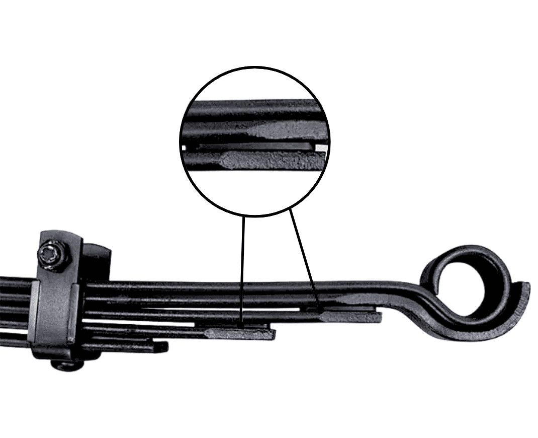 Inter leaf anti friction liners between the spring’s leafs to reduce friction and improve ride comfort (excludes some part numbers)