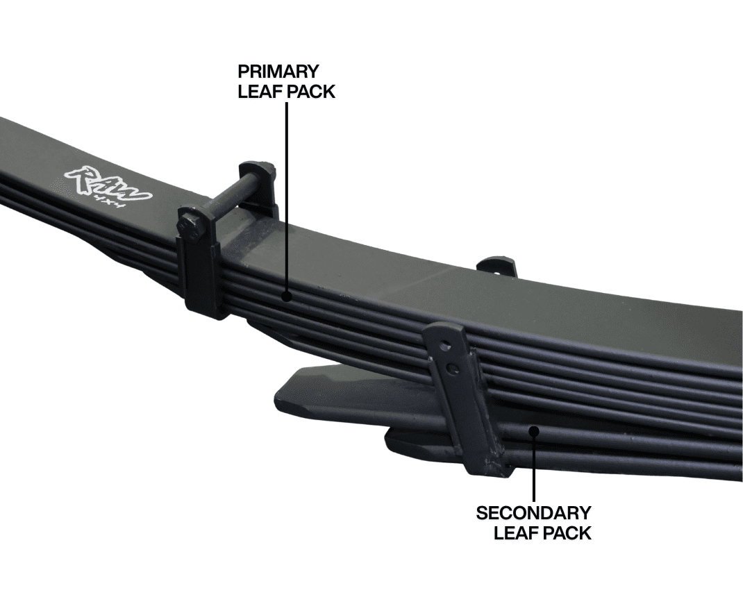 Two stage leaf pack for additional support when the vehicle is heavily laden.