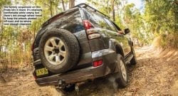 Okay, so straight away it was plain to see that ride quality had been improved massively. That’s a huge one for something like a Prado, which has been built to be comfortable to punch out massive kays in. But what about where it really counts – out in the scrub? To test the new suspension out, we went straight for our local playground, a maze of tracks filled with big ruts, rainforesty sections and long rocky steps. The Prado, while not exactly being a hardcore rock-crawler, was instantly more comfortable in the rough stuff. You could tell that it was keeping all four wheels planted a lot longer, particularly due to the extra wheel travel in the rear. That had the effect of pushing the opposite corner of the vehicle down into the terrain, keeping the weight over the front and preventing the front wheels from lifting.