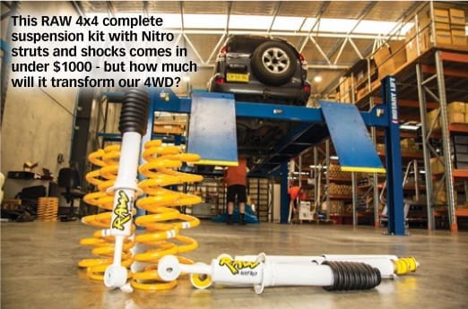 SUSPENSION – Every 4WD needs quality suspension, even if it’s a brand new vehicle. That’s not to say you need to lift your 4WD twenty inches up into the sky, but the right suspension kit will both provide a bit of extra under-vehicle clearance, as well as firming up the ride for better ride quality and load-carrying ability. For this test we spoke to the gurus at Raw 4×4, who provided a tailor-built RAW Nitro suspension package that amazingly came in under $1000. Price: $976